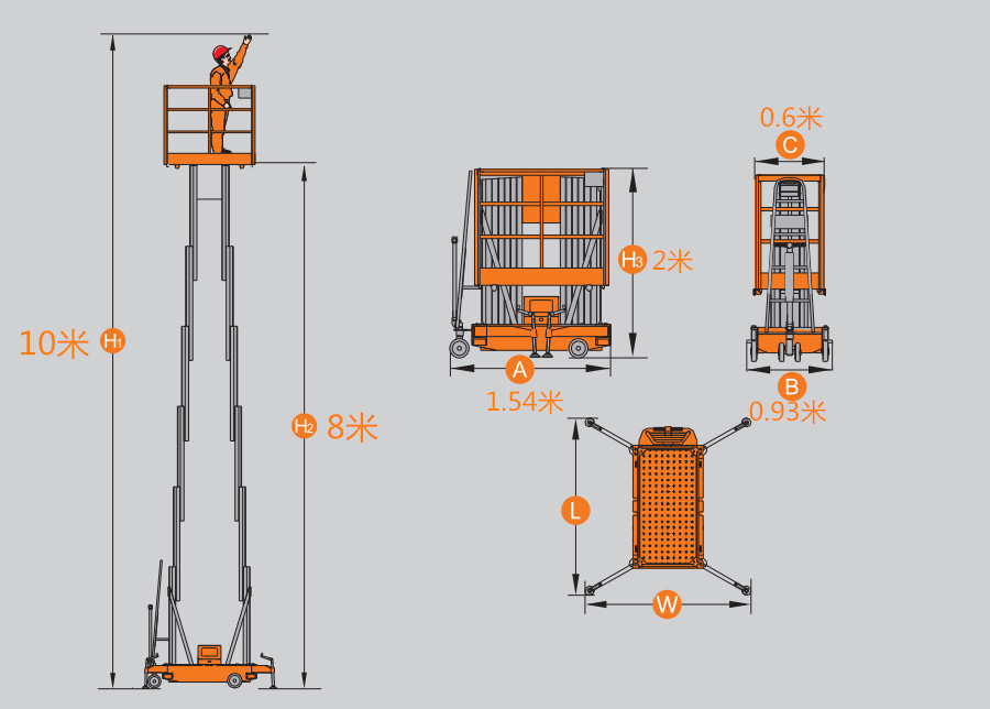 以下是鑫坤宇双柱铝合金升降机8米的设计图纸: