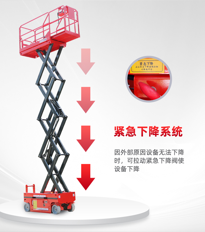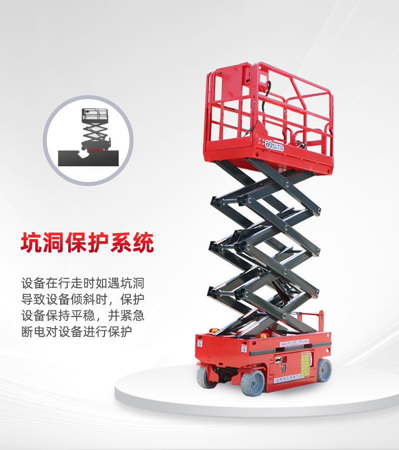 高效作业,节省时间:由于具备自行移动能力,无需外接电源或吊装设备,即可快速到达作业地点并开始工作,大大节省了搬运和安装时间。同时,其升降速度快、承载能力强,能够高效完成高空作业任务。